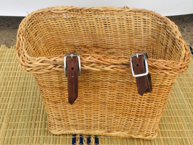 They can be hooked onto a front carrier or be attached with the nice handmade leatherstraps unto the handle as well as being an eye-catcher on the side of the back carrier.