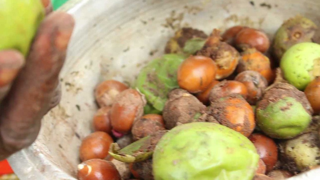 Zur Gewinnung des Fetts werden die Nüsse von ihrem Fruchtfleisch befreit und in einem aufwändigen Verfahren zerkleinert. Anschließend werden die gemahlenen Kerne mit warmem Wasser vermengt und zu einer breiartigen Masse geknetet.