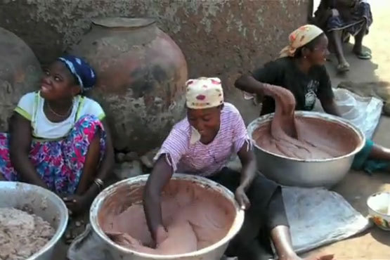 To gain the actual sheabutter the shell of the nuts gets peeled off and the remaining kernel gets milled in a complex procedure.